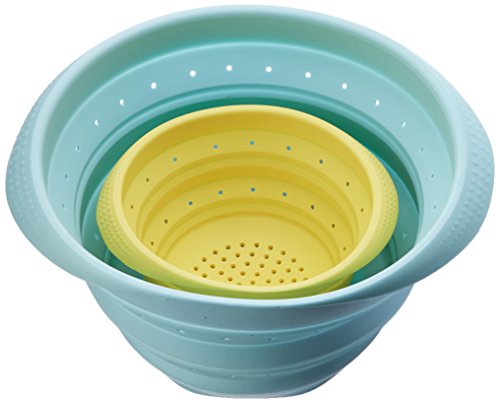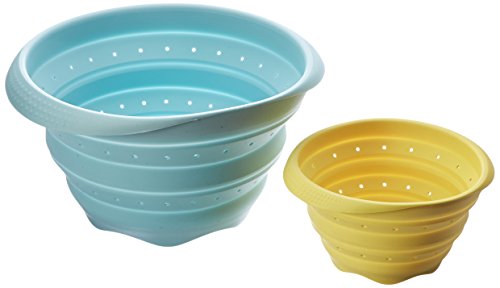 LexLiving Silicone Collapsible Foldable Colander Strainer Set, BPA Free & 100% Food Grade, Blue (4 quart)/ Yellow (1 quart)