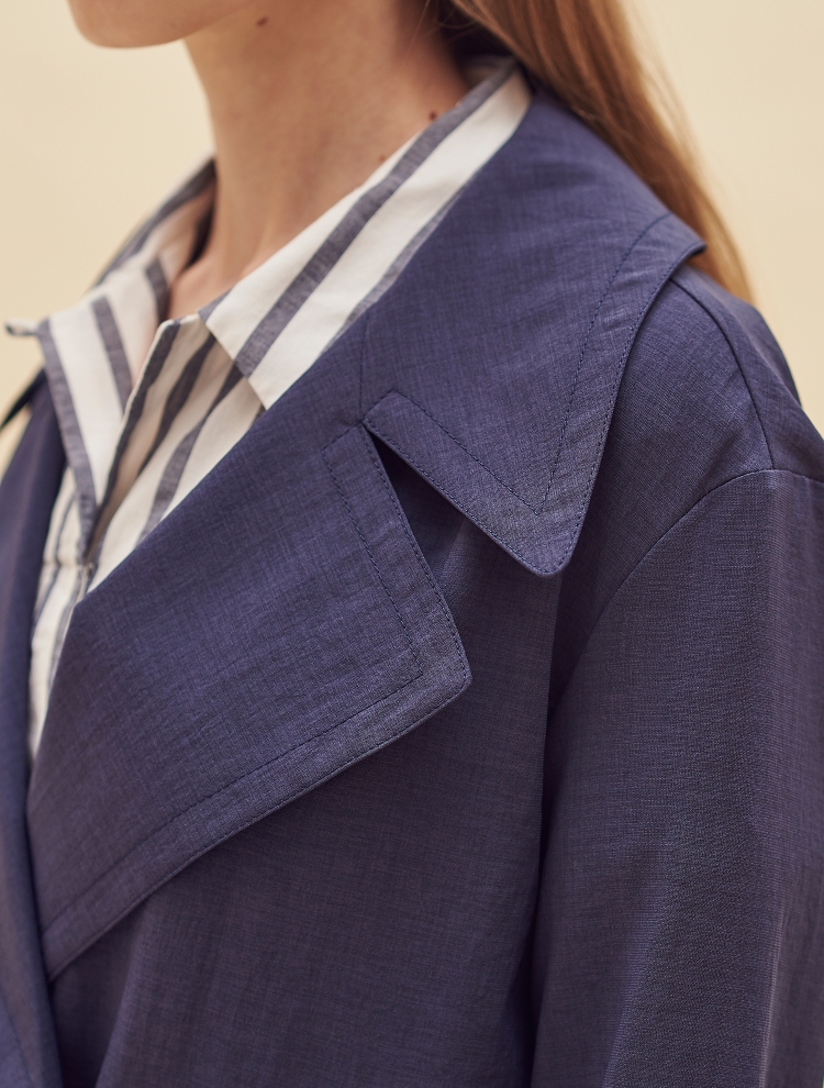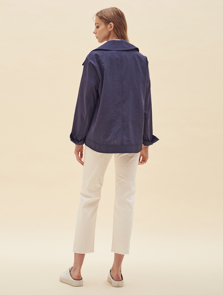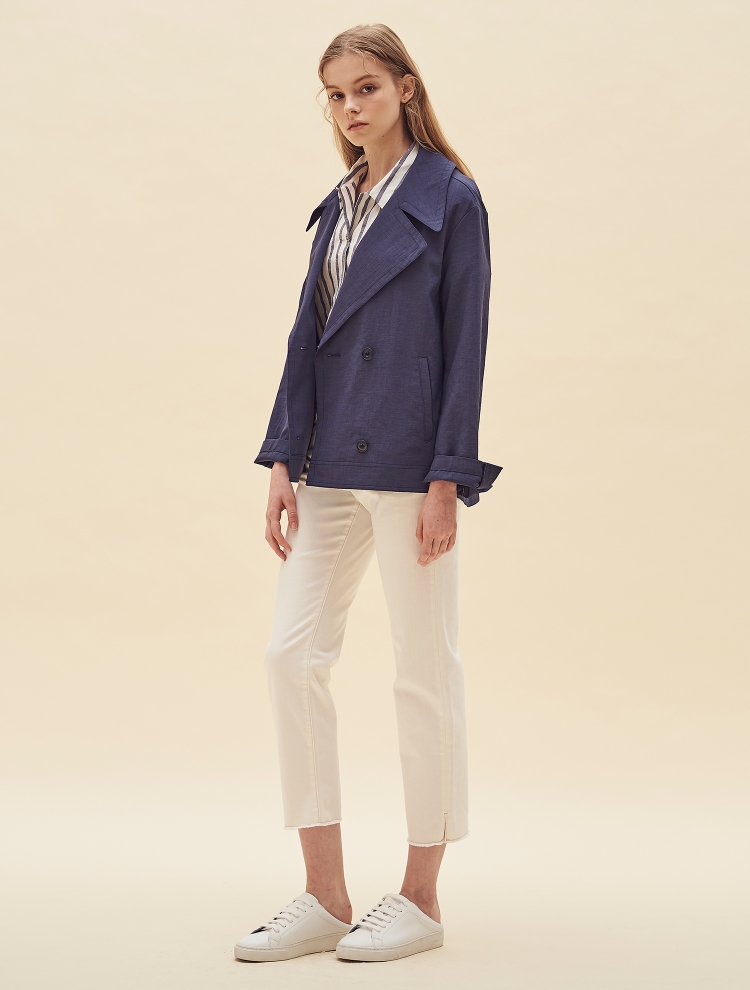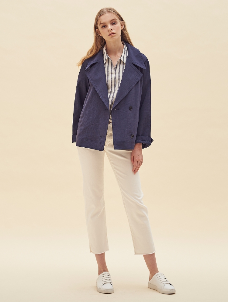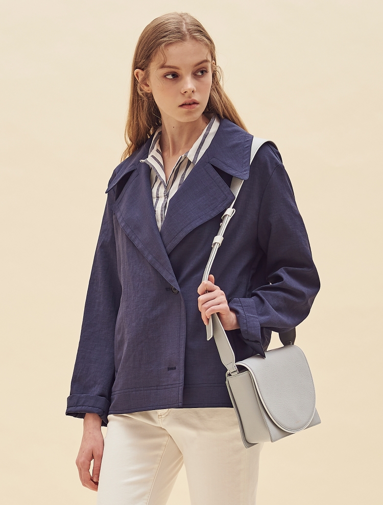 - 트렌디한 와이드 칼라 디자인으로 포인트를 더한 숏한 길이감의 재킷입니다.