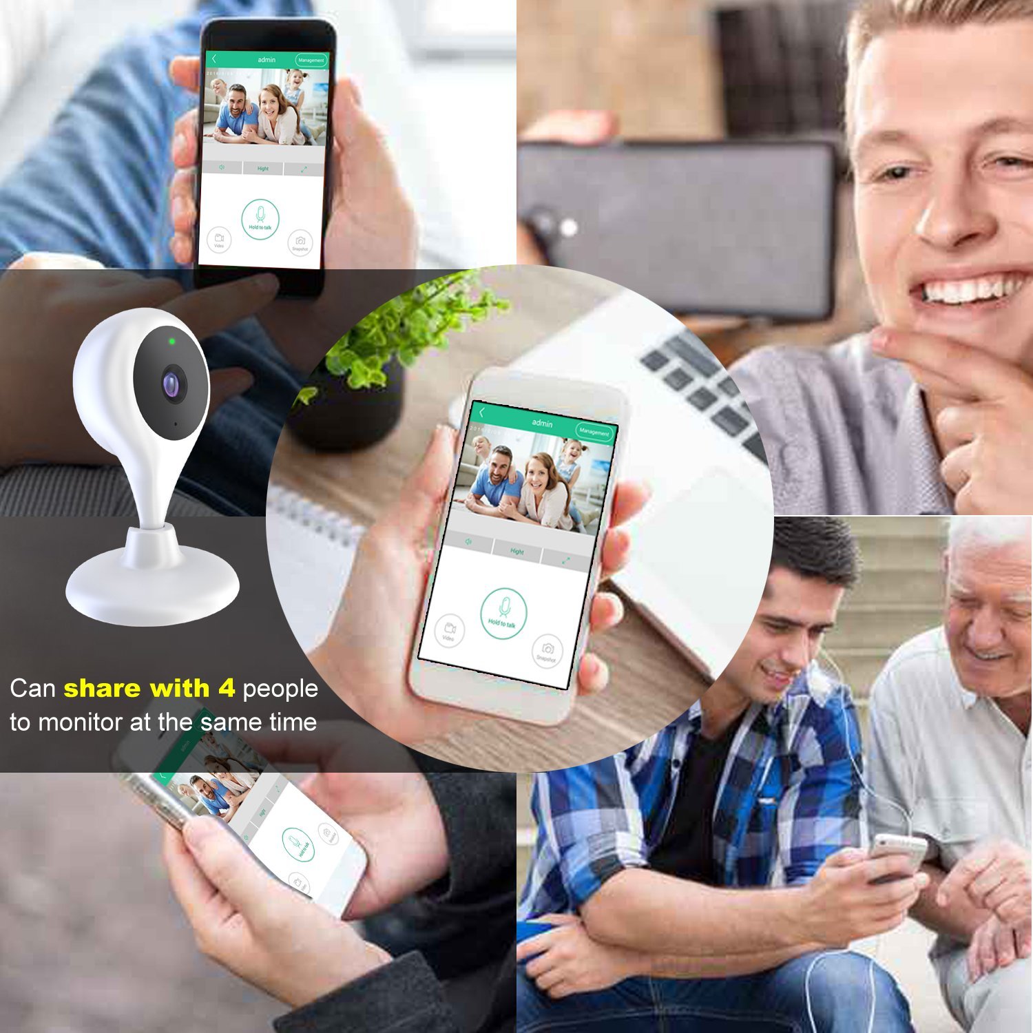 Two-way talk View real-time video remotely SD card support (up to 128 GB) 720p/1080p HD, 120° View 360 degree rotation Magnetic base Simple setting free MiCam app