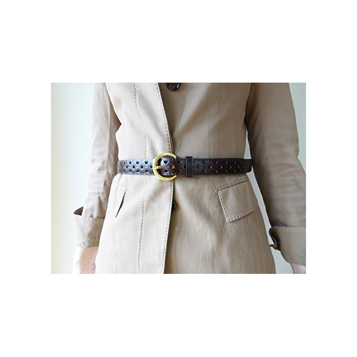 D&L co.ltd (D 앤드 L) D&L co.ltd(D 앤드 L) 레이디스 골드 버클 홀 펀칭 레더 벨트 (레드 브라운)