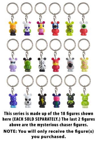 ? Disney Vinylmation is not just a new collectible line bearing the Disney brand. It is the product of talented Disney artists. The original Vinylmations collectible line was an instant hit, when the Park Series #1 was released in 12/2008. Now, here we see the arrival of the latest installment -- the Jr Series #1. Riding the designer toys trend, the Disney Theme Park exclusive Jr Series #1 features 18 ceatively designed figure keychains. Disney fans, start collecting now! The 18 designs are (EACH SOLD SEPARATELY): Crowned, Eyeball, Eyelashes, Fish, Flames Jr, Flytrap, Helmet, Lightning Bolt, Mrs. Skull, Music Notes Jr, Paisley, Raindrops, Shark, Skull, Tribal, Tulip, (Chaser) Green Sparkles , (Chaser) Slime Bubbles. ? To purchase other figures in this series, search for: ? BCCC41G6-0400000071572 (Green Sparkles) ? BCCC41712-0400000071572 (Slime Bubbles) ? BCCC41705-0400000071572 (Crowned) ? BCCC4ZC-0400000071572 (Eyeball) ? BCCC4Z82-0400000071572 (Eyelashes) ? BCCC4Z75-0400000071572 (Fish) ? BCCC4Z68-0400000071572 (Flames Jr) ? BCCC4Z51-0400000071572 (Flytrap) ? BCCC4Z44-0400000071572 (Helmet) ? BCCC4Z37-0400000071572 (Lightning Bolt) ? BCCC4Z20-0400000071572 (Mrs. Skull) ? BCCC4ZY-0400000071572 (Music Notes Jr) ? BCCC4Z06-0400000071572 (Paisley) ? BCCC41O0-0400000071572 (Raindrops) ? BCCC415D-0400000071572 (Shark) ? BCCC415H-0400000071572 (Skull) ? BCCC41N9-0400000071572 (Tribal) ? BCCC41552-0400000071572 (Tulip)