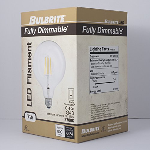 Bulbrite 776678 LED7G40/27K/Fil/E26/2 LED 7W Dimmable Light Bulb, E26/Medium Base, Warm White