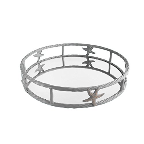 American Atelier Seaside Shell Round Mirror Tray, Silver