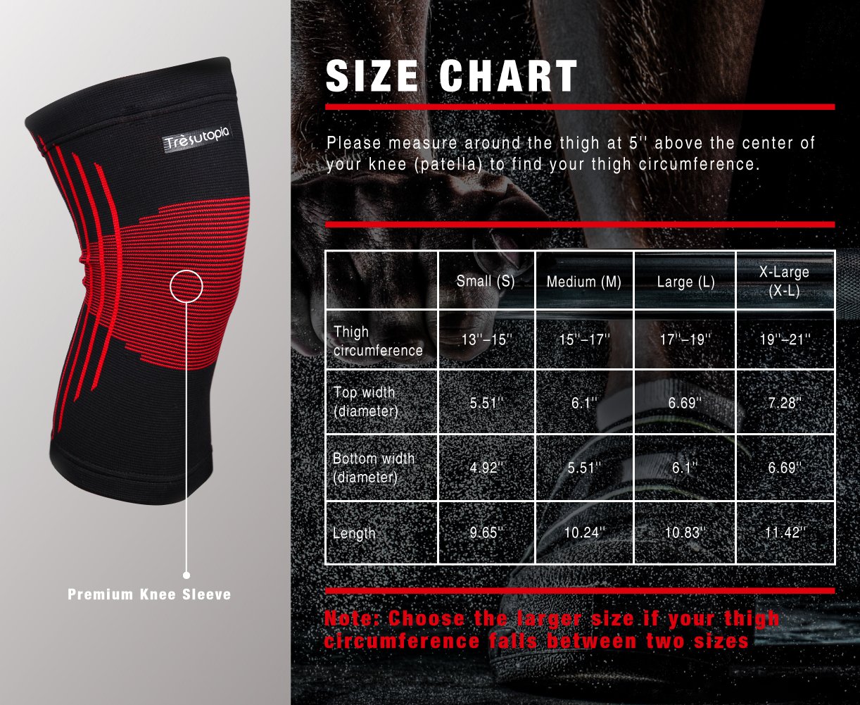 In order to know the size around the thigh, measure the size of the femur around 5 inch (about 13 cm) from the patella (knee dish).