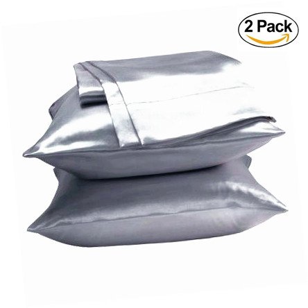 UNIHome 2pc New Queen/Standard Silk~y Satin Pillow Case Multiple Colors (Silver)