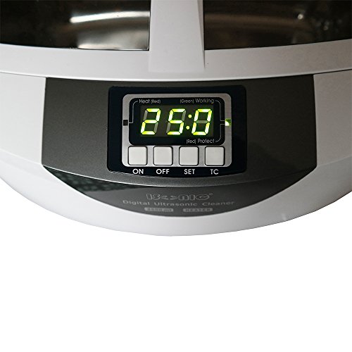Studio : iSonic Publisher : iSonic Binding : Misc. Product Description iSonic ultrasonic cleaner P4820-WPB25 has an upgraded 25-minute timer which works better for applications such as reloading which typically needs longer running time. It has an industrial grade stack transducer which is about twice more powerful and more durable than Wafer transducers used in our small personal models but also used by some name-brand manufacturers in their commercial models. The Timer settings are 5-10-15-20-25 minutes, heater is preset at 149F/65C. Heater runs independently to cleaning. Stainless steel tank Size 9.6"X5.9"X5". The brass cleaning solution is a super concentrate. Mix it 1:20 to 1:40 with water to clean Brass. Cleans better when heater is used. 0