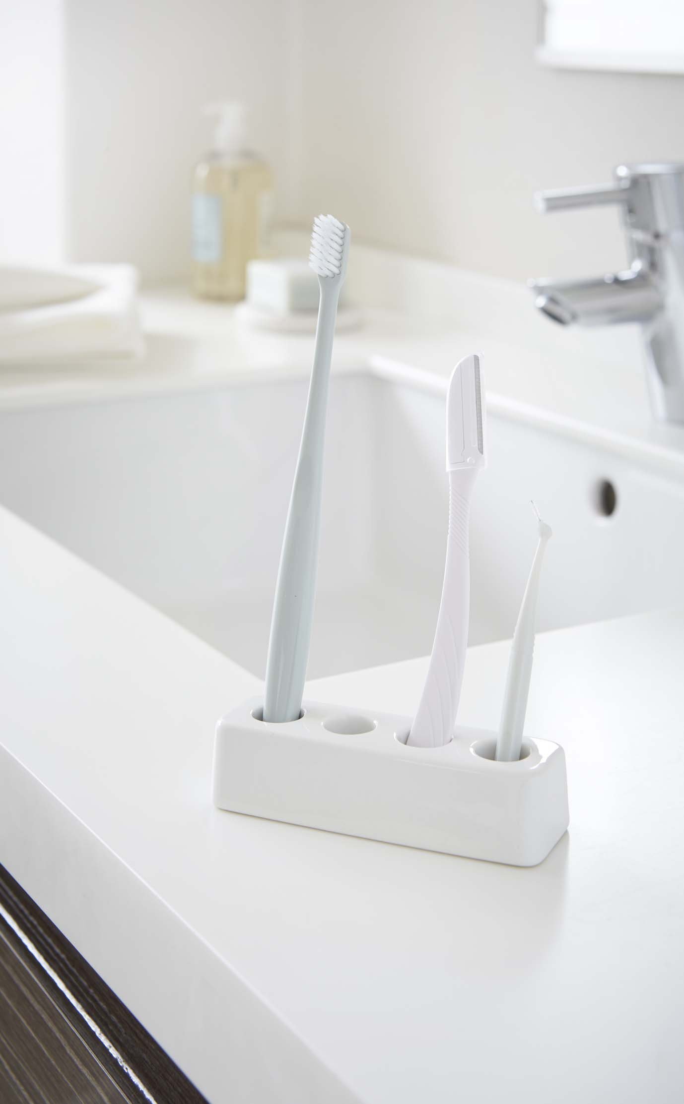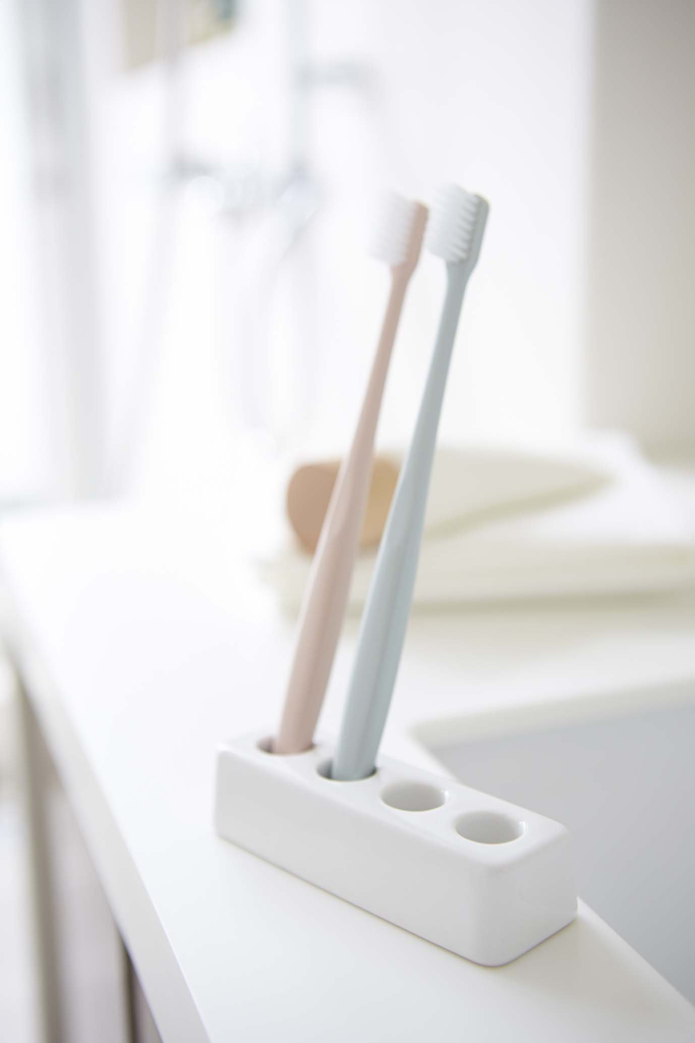 YAMAZAKI home 2612 1.4 x 4.3 in. Plane Ceramic Toothbrush Stand - Square White