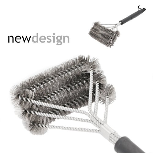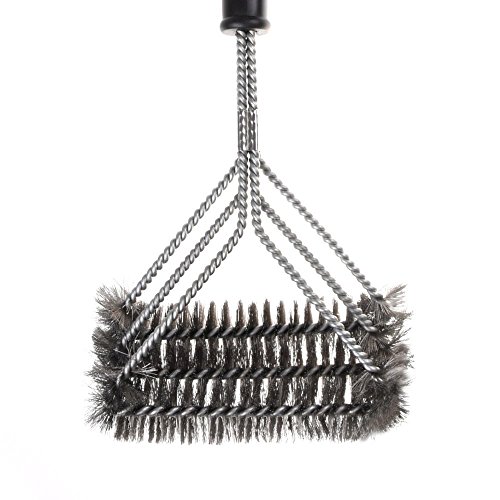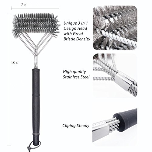 EFFORTLESS CLEANING: With a unique design, this 18" long barbecue brush has three brushes in one, each with its own equivalent stroke. Be prepared to clean every bit of residue with its inovative 360 degree rotator