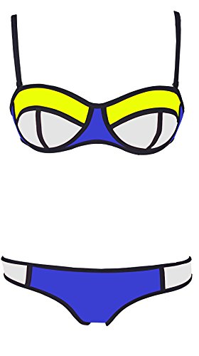 Ebuddy 2015 Contrast Wet Suit Neoprene Bikini Swimsuit (S (US2-4), Deep Blue)