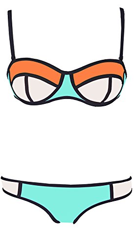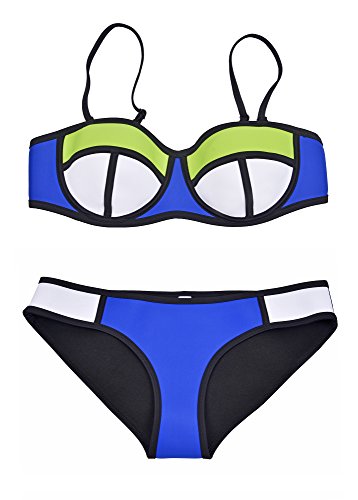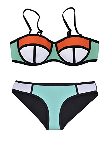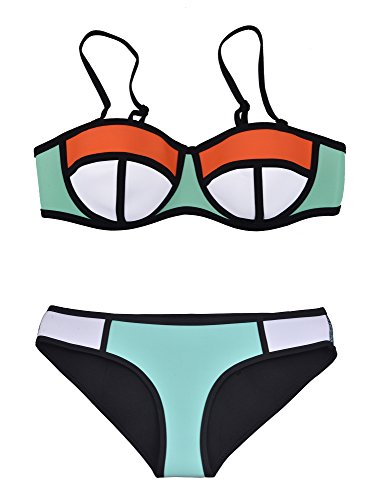 Ebuddy 2015 Contrast Wet Suit Neoprene Bikini Swimsuit (M (US4-6), Green)