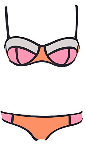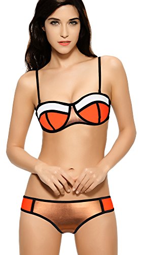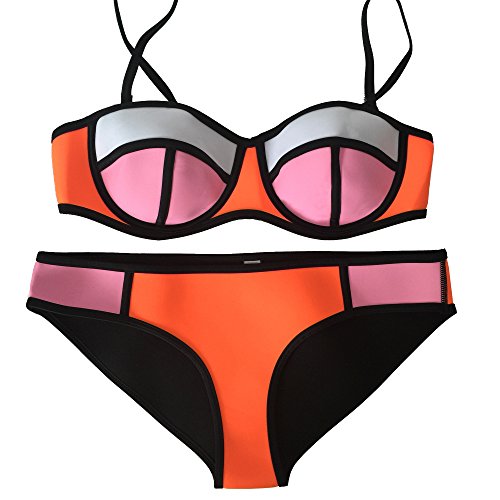 Ebuddy 2015 Colour Block Wet Suit Neoprene Bikini Swimsuit (XL (US8-10), Orange)