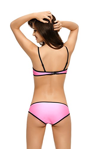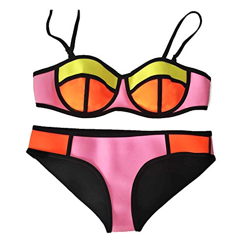 Ebuddy 2015 Colour Block Wet Suit Neoprene Bikini Swimsuit (XL (US8-10), Pink)