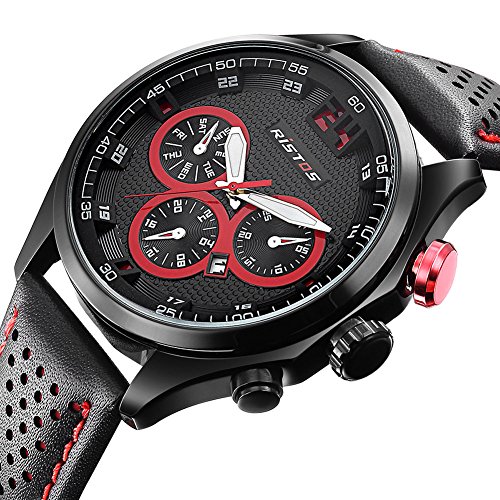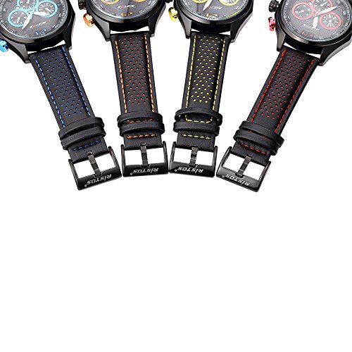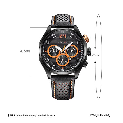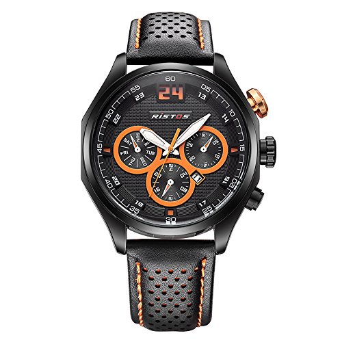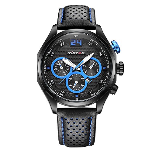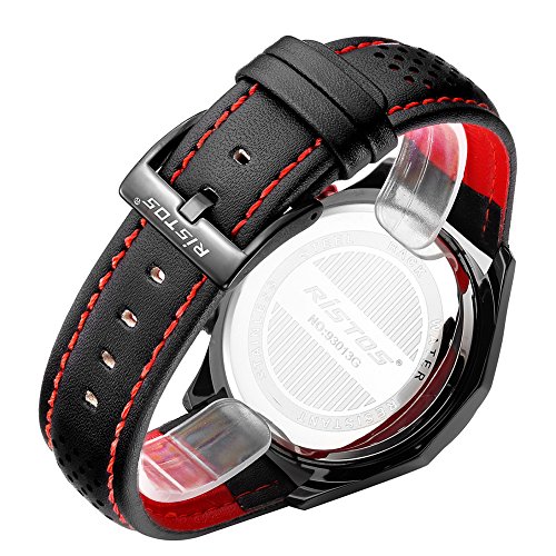RISTOS Rockyu 감정 브랜드 인기 손목시계 워치 맨즈 레이디스 스포츠 워치 30M 방수 내구 캘린더 야행 포멀 사파이어 유리 블랙 레더 가죽 밴드 [병행수입