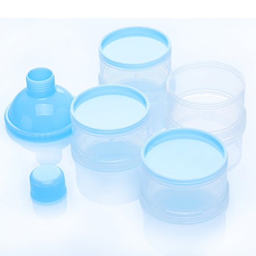 Use the funnel cap to put all the powder in one case without spilling! After reaching weaving stage, cases can be separated for independent use and for whole food storage with the separating mid-caps. Container holds enough powder for three separate feedings and works well for outdoor/nighttime nursing.Note:Since the size above is measured by hand, the size of the actual item you received could be slightly different from the size above. Meanwhile, please be reminded that due to lighting effects, monitor's brightness / contrast settings etc, there could be some slight differences in the color tone of the pictures and the actual item.