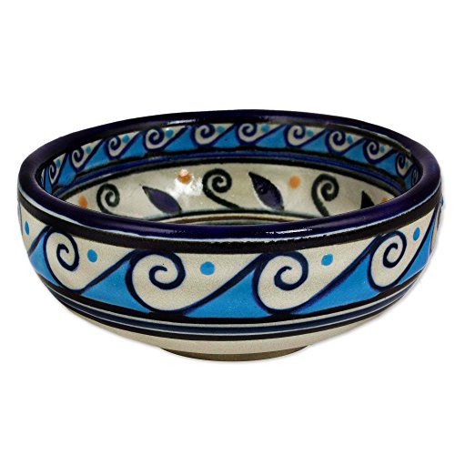 NOVICA Beige and Blue Hacienda Ceramic Bowls, 6 oz, 'Puerto Escondido' (pair)