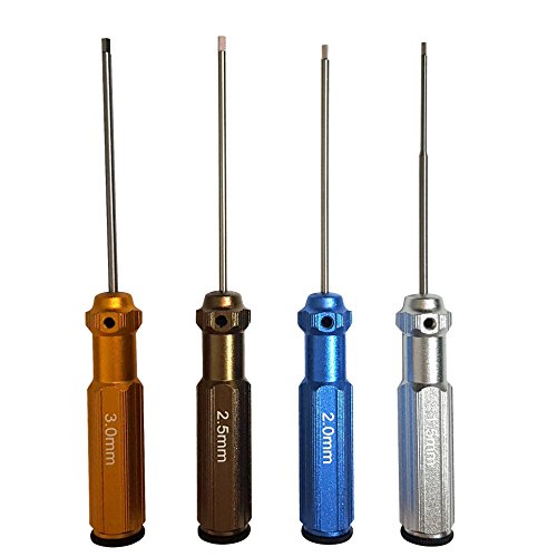 Aiskaer full-color lightweight titanium nitride coating Hex Driver Wrench 4 Piece Set,Hex Screw driver Tools Kit Set for RC Helicopter (1.5mm/2mm/2.5mm/3.0mm)