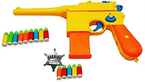 -. Feature : 1 Toy p.i.s.t.o.l, 1 magazine, 10 bullets, PLUS A BONUS PACK including a metal sheriff badge and 5 extra bullets, for a total of 15 bullets in this playset. FUN AND REALISTIC: 1:1 size of a C96 Mauser with a real blowback style loading
