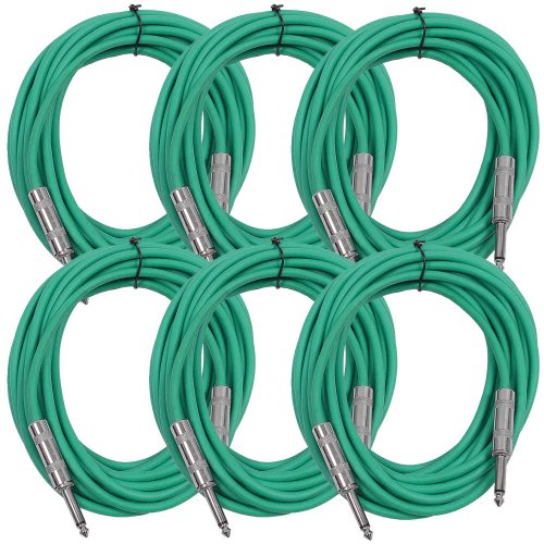 Seismic Audio SASTSX-25Green-6PK 25-Feet TS 1/4-Inch Guitar, Instrument, or Patch Cable, Green