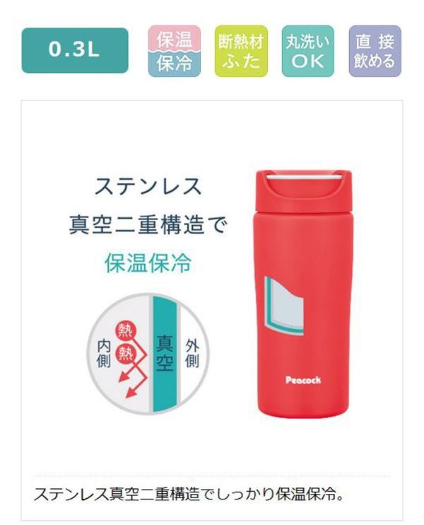 | 素材・材質 | 内瓶:ステンレス鋼 胴部:ステンレス鋼(アクリル樹脂塗装) せん:ポリプロピレン パッキン:シリコーンゴム |