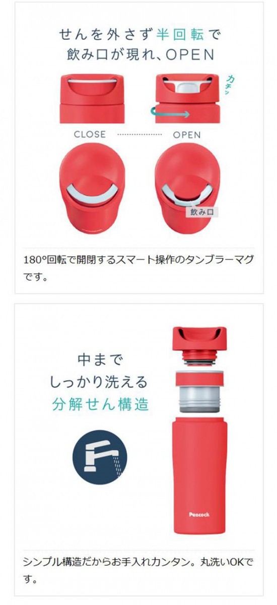| 180度回転で開閉するスマート操作のタンブラーマグです。シンプル構造だからお手入れカンタン。丸洗いもOK!スッキリとしたデザインで、自宅・学校・オフィスなどの様々なシーンでお使いいただけます♪ |