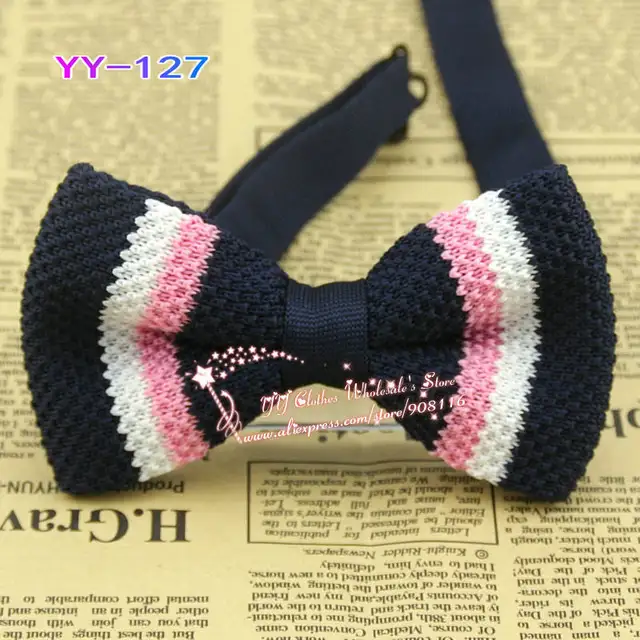 | [해외]핑크, 화이트, 네이비 블루 스트라이프, 새로운 디자인 남자 Kniiting 나비/나비 넥타이, 남성 폴리 에스테르 니트 조정 목 나비 넥타이, yy-127 |