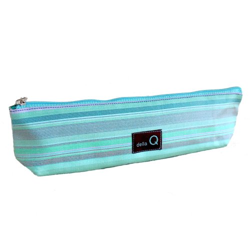 della Q Long Zipper Knitting Case for Notions (9" W x 2.5" H x 1.5" D); 017 Seafoam Stripes 1102-1-017