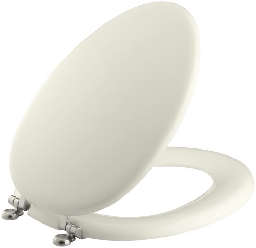 KOHLER K-4701-BN-96 Kathryn Elongated Toilet Seat with Vibrant Brushed Nickel Hinges, Biscuit