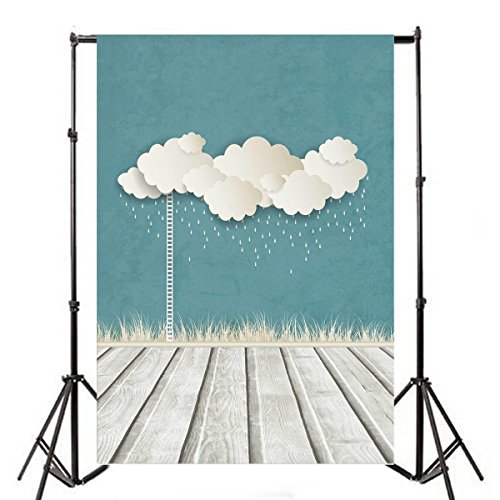5x7ft Lfeey Vinyl Photography Background Backdrops Pure Blue Cloud Rainy Day Ladder Wall Wooden Floor Weeds Baby Newborn Kids Fantasy Fairy Dreamlike Dreamy Scene Studio Photo Props 1.5x2.2m