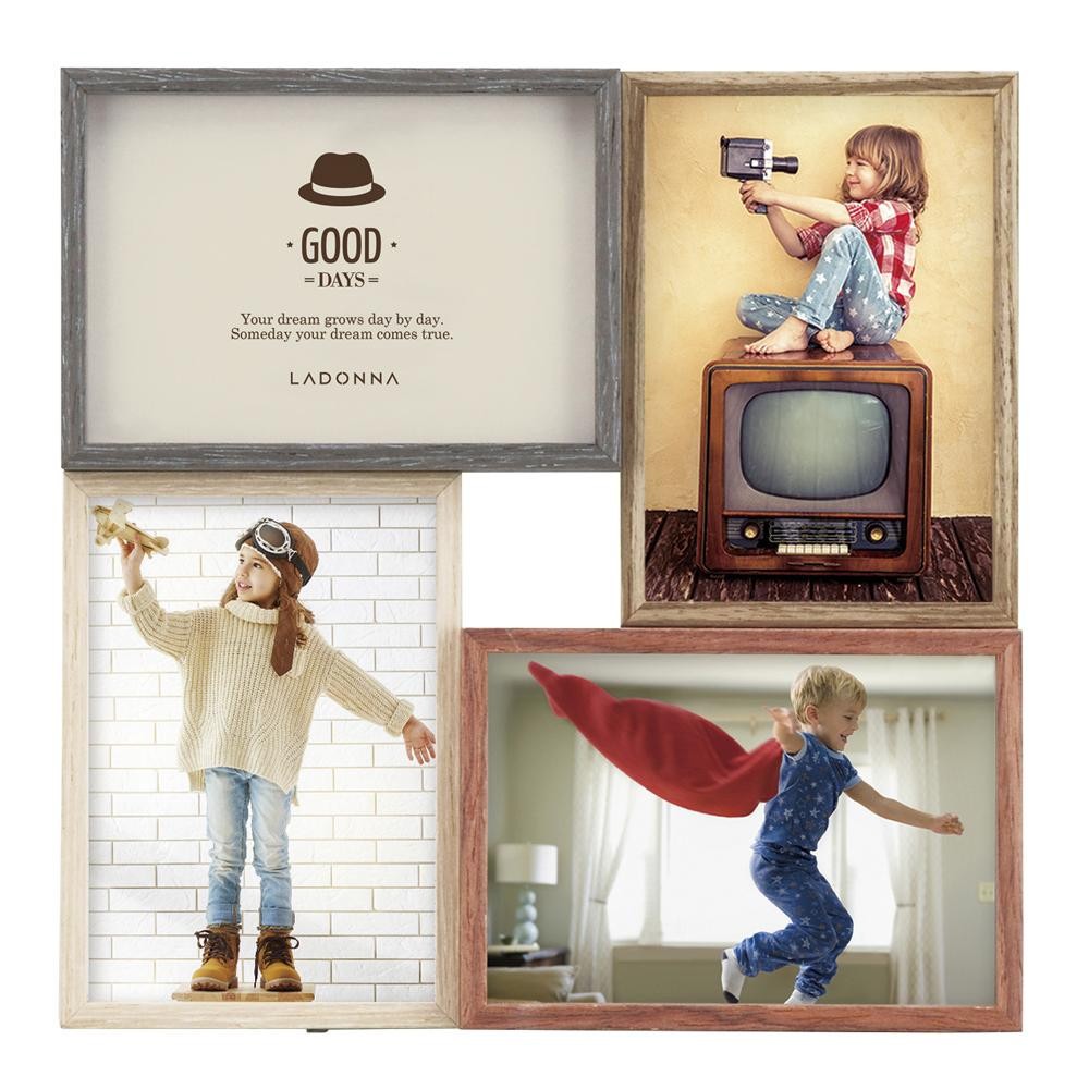 くすんだ色味がナチュラルで可愛いフレーム。L判写真を4枚飾れます。
