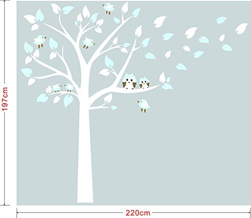 CaseFan Cute Owls on Tree Wall Stickers Mural Paper for Livingroom Kid Baby Nursery Vinyl Removable DIY Decals 86.6x77.6",Pink+White