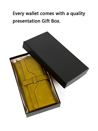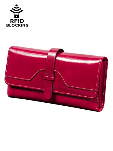 -. Title : Clothink Women's Wallet Wax Full-Grain Leather Clutch RFID Blocking Large Capacity Card Holder Tri-fold Purse with Gift Box