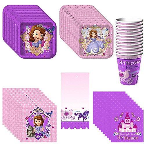-. Binding : Toy -. Feature : Disney Junior Sofia the First Deluxe Party Supply Pack Including Plates, Cups, Napkins and Tablecover for 16 Guests -. IsAdultProduct : 0 -. Label : BirthdayExpress -. Manufacturer : BirthdayExpress -. PackageQuantity : 1 -. ProductGroup : Toy -. ProductTypeName : TOYS_AND_GAMES -. Publisher : BirthdayExpress -. Studio : BirthdayExpress -. Title : Disney Junior Sofia the First Deluxe Party Supply Pack Including Plates, Cups, Napkins and Tablecover for 16 Guests