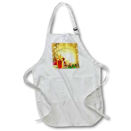 3dRose apr_4571_1 Merry Christmas Full Length Apron with Pockets, 22 by 30-Inch, White