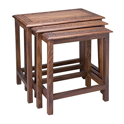 -. Feature : Authentic Fair Trade Product. Ethically sourced and 100% handmade. / Shesham wood / Set of 3 tables / 21Lx13Wx21H inches / Made in Pakistan