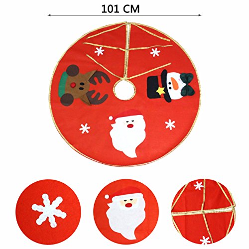 KOSBON Christmas Tree Skirt Mat for Christmas Holiday Tree Party Decoration Design with Santa and Snowman ELK Perfect for Any Size Tree 42" (A)