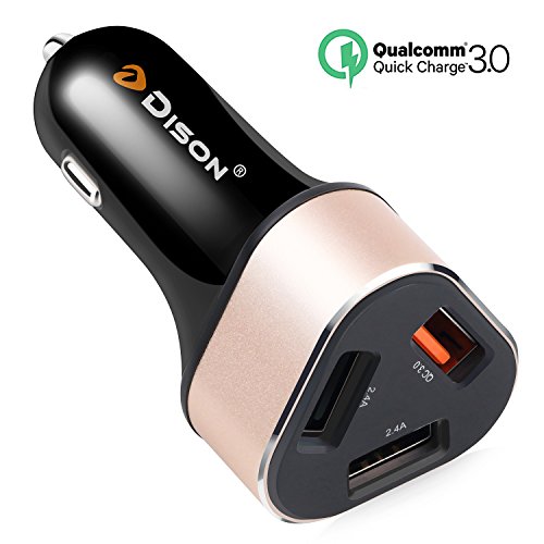 Dison Quick Charge 3.0 Car Charger, 3 USB Port Fast Charging Adapter QC 3.0 and 5V/2.4A Dual Smart Port Car Charger for iPhone 7, Samsung Galaxy Series and other Mobile