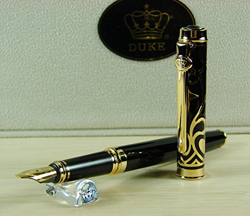 -. Binding : Office Product -. Brand : Duke -. EAN : 0795400109803 -. Feature : Nib Size :Calligraphy Bent Nib , Cap : push type / Capped length 138mm , Posted length 155mm , Diameter 11mm & pen weight 35g / Take Cartridge : International standard ( Fit the Jinhao cartridges in our store ) / Package : One pen & and gift box as picture shown -. Label : Duke -. Manufacturer : Duke -. Model : Duke Sweet Heart Gold Calligraphy Pen -. MPN : Duke Sweet Heart Gold Calligraphy Pen -. PackageQuantity : 1 -. PartNumber : Duke Sweet Heart Gold Calligraphy Pen -. ProductGroup : Office Product -. ProductTypeName : OFFICE_PRODUCTS -. Publisher : Duke -. Studio : Duke -. Title : Duke Sweet Heart Gold Calligraphy Nib Fountain Pen Sapphire on Top with Original Gift Box -. UPC : 795400109803