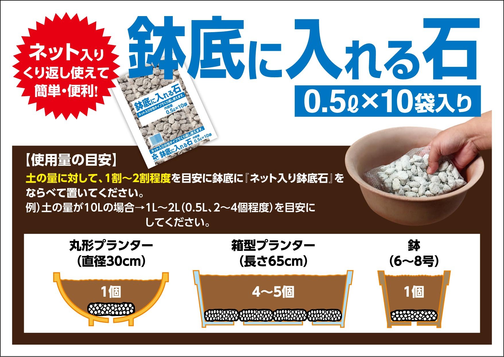 Because it is in the net, you can easily separate the pot bottom stone and soil at the time of replanting.