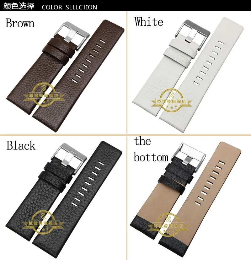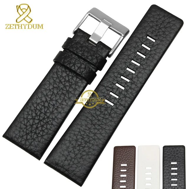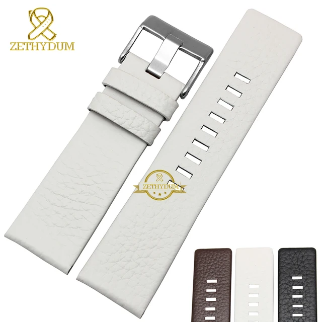 정품 가죽 팔찌 손목 시계 여성 남성 시계 스트랩 손목 밴드 22 24 26 28 30 미리메터 화이트 DZ1405 DZ4323