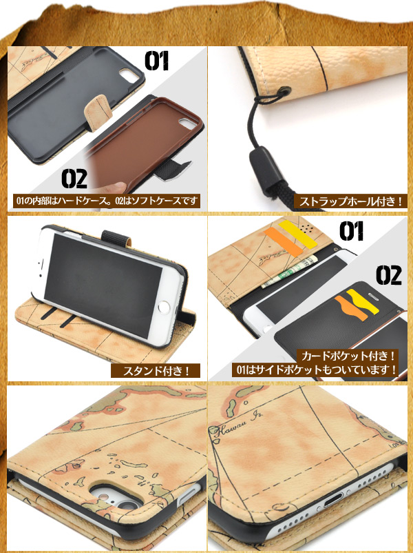 レトロな世界地図デザインがオシャレな、iPhone 7用ケースポーチ!