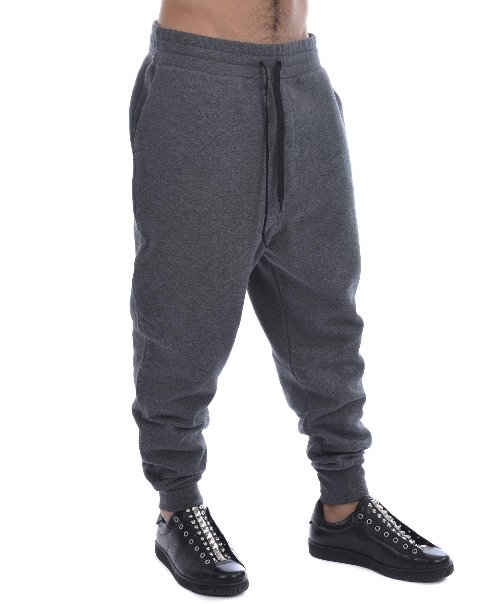 Pantaloni jogging AMI Alexandre Mattiussi in felpa di cotone Grigio scuro melange. Elastico in vita con coulisse. Tasche frontali diagonali. Elastico a costine al fondo. Interno felpato. Misura in foto M 100% cotone
