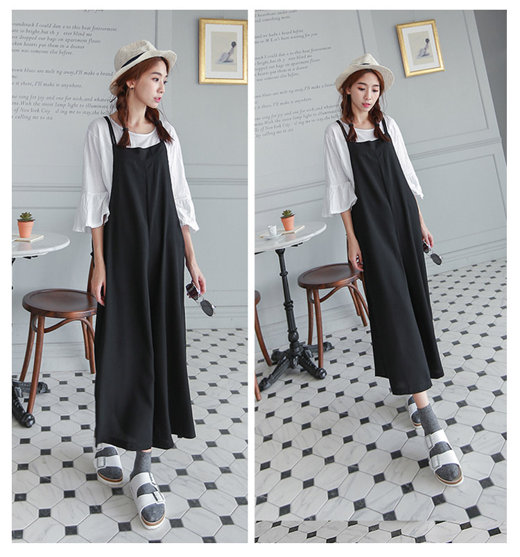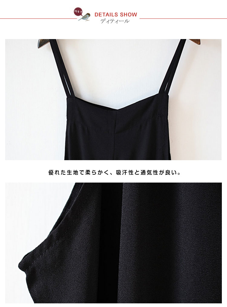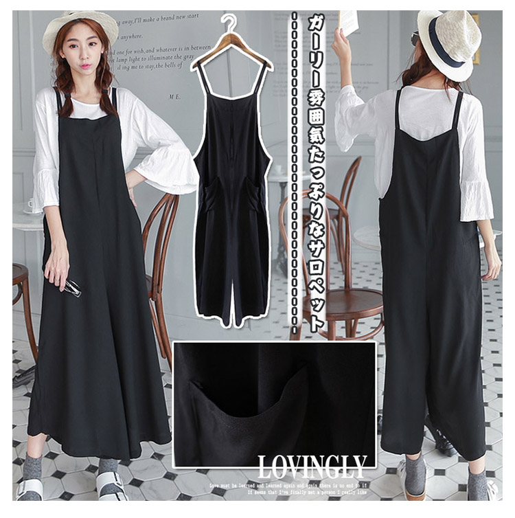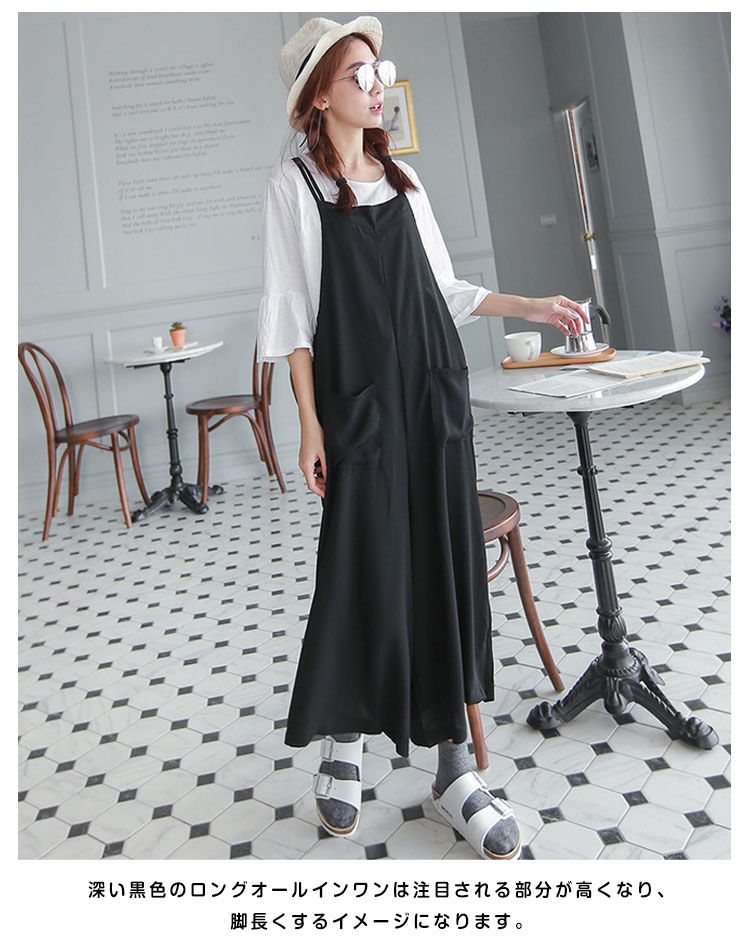 | ガーリー雰囲気たっぷりなサロペット。ゆったりとして、ロング丈ガウチョパンツのデザインは気にする太い部分を隠せて、着痩せ効果が際立てます。深い黒色のロングオールインワンは注目される部分が高くなり、脚長くするイメージになります。女性たちの永遠のテーマ「着やせ」を完璧に演出できるアイテム。 | |