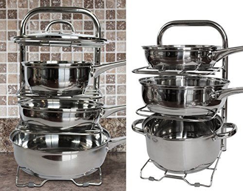 Stores up to 4 Pans or Pots: Great way to organizer your Kitchen Countertop, Cabinets or Under the Sink (Please make sure the space is taller than 16.5 inches).