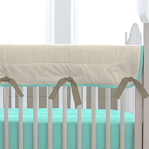 -. Feature : Single (1) rail cover / Measures 50" long by 18" wide / Folds over top of crib rail / Reversible / Made in the USA