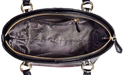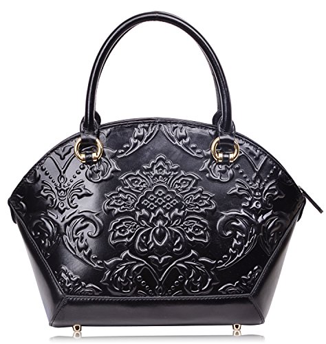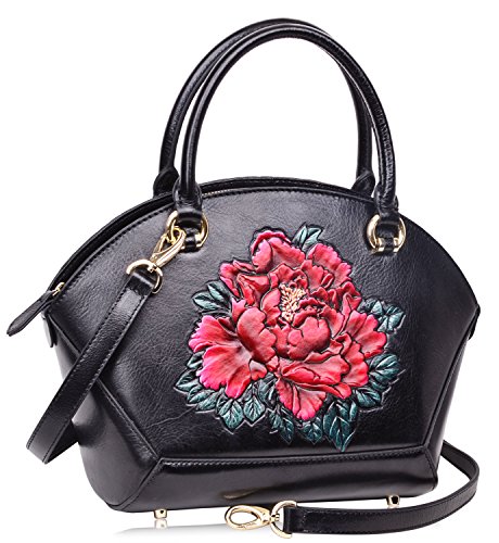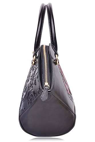 Fashion Leather Handbag :100% Genuine Leather with Embossed Floral , Fabric Lining;