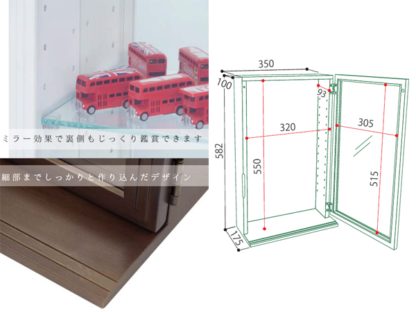 ●本体/ラバーウッド材、背面/3mm厚ミラー、扉/3mm厚ガラス、棚/5mm厚ガラス・3枚
