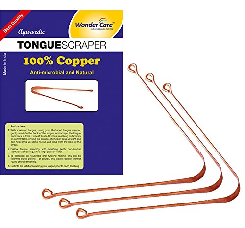 Wonder Care - 100% Copper Tongue Scraper/cleaner Ayurvedic Antibacterial for Optimal Oral Hygiene (3 Pieces)