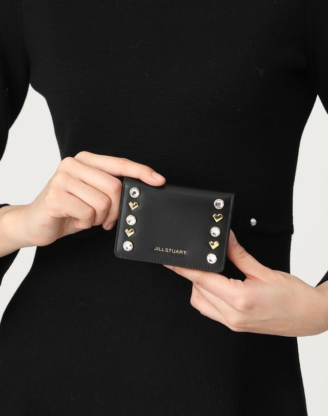 베이직한 디자인으로 하트 스터드와 큐빅장식으로 포인트를 준 고급스러운 소가죽을 사용한 폴더 형식의 디자인으로 사용이 편리한 베이직한 디자인의 카드지갑니다.