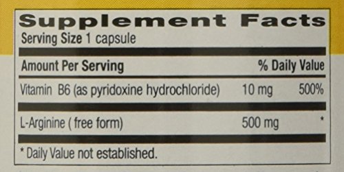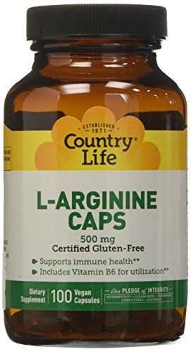 -. Binding : Health and Beauty -. Brand : Country Life -. EAN : 0817796024512 -. Feature : Pack of two, 100 count (total of 200 count) / Vegetarian capsules / A dietary supplement / Pack of 2 / 100 count per pack -. IsAdultProduct : 0 -. Label : Country Life Vitamins -. Manufacturer : Country Life Vitamins -. NumberOfItems : 1 -. PackageQuantity : 1 -. ProductGroup : Health and Beauty -. ProductTypeName : HEALTH_PERSONAL_CARE -. PublicationDate : 2016-01-13 -. Publisher : Country Life Vitamins -. ReleaseDate : 2016-01-13 -. Studio : Country Life Vitamins -. Title : Country Life 500Mg L-Arginine with B-6 Nutritional Supplement, 2 Count -. UPC : 817796024512