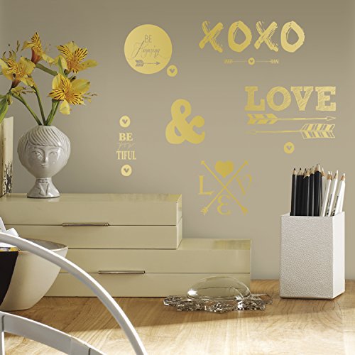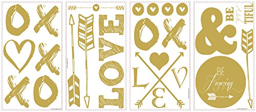 RoomMates RMK2995SCS Gold Love with Hearts and Arrows Peel and Stick Wall Decals